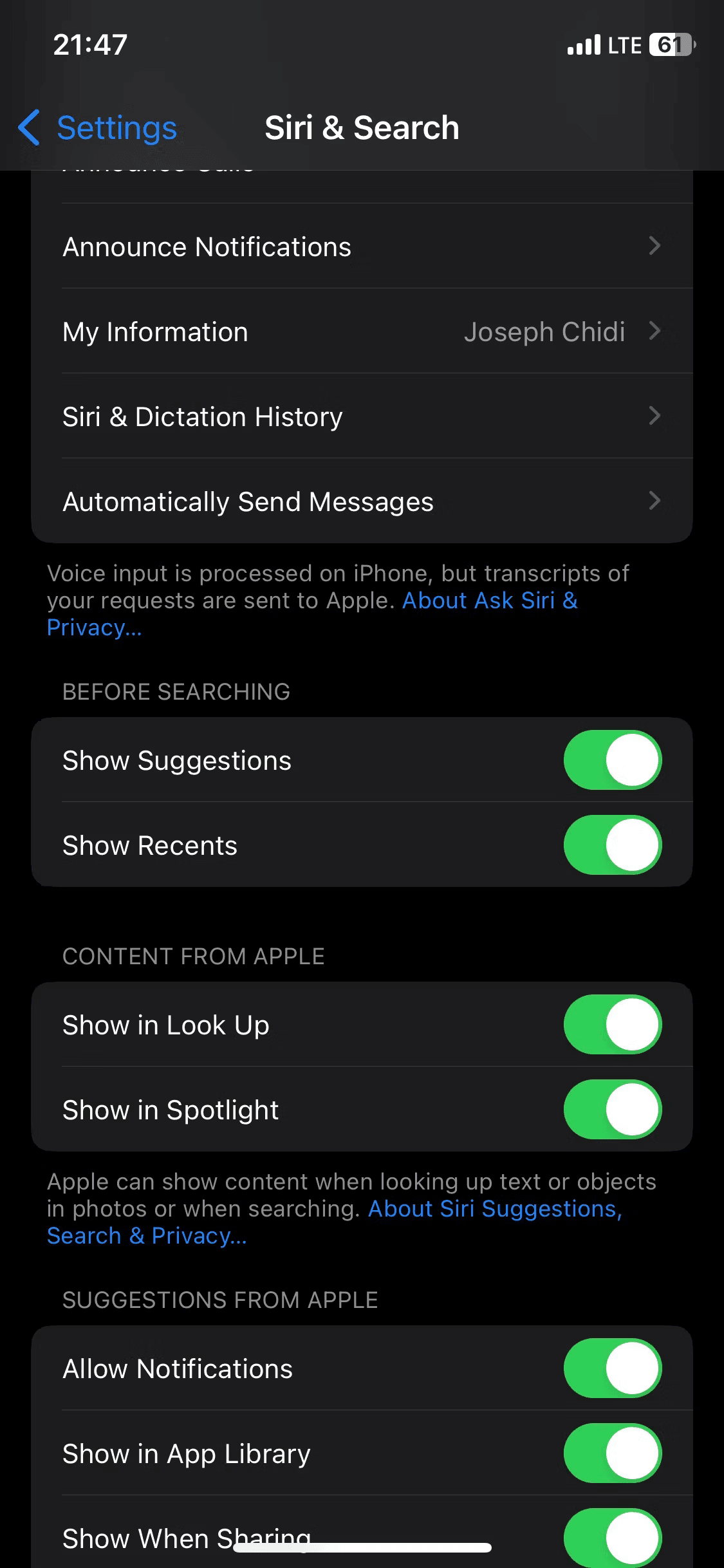 1. Check Siri & Search Settings